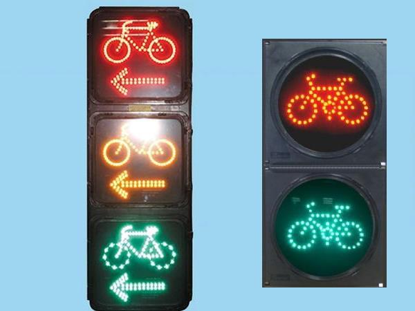 7.需要单独控制左转非机动车交通流时,竖向安装,分为2组,左边一组为左转非机动车信号灯,由上向下应为红、黄、绿;右边一组为非机动车信号灯,由上向下应为红、黄、绿。